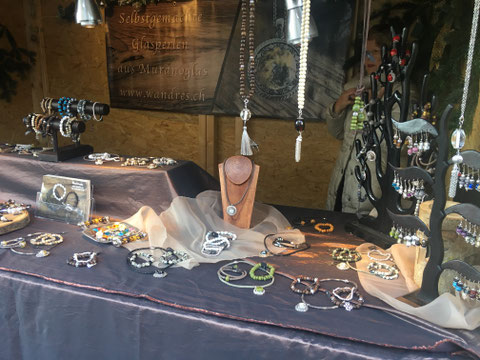 Ideal als kleine Mitbringsel: Weck-Gläser, Apéro-Sticks, Kugelschreiber oder Weinflaschen-Verschlüsse. Alle verziert mit selbstgedrehten Kugeln aus Muranoglas. Die Kugeln werden je nach
